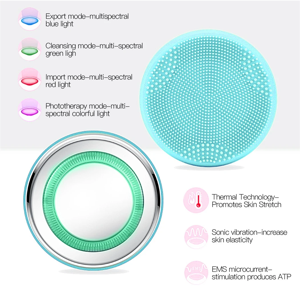 Щетка CkeyiN для очищения лица, LED светильник, массажер для глубокой очистки лица, инструмент для ухода за кожей, 4 режима, устройство для подтяжки и подтяжки