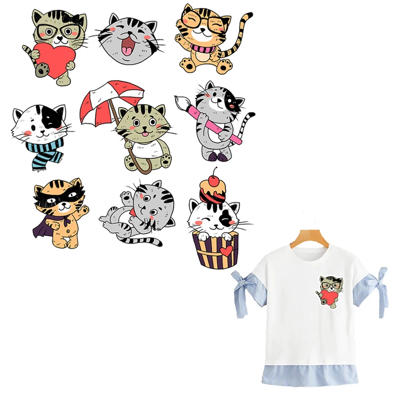 Мультяшные животные, набор бытовых наклеек с теплопередачей для одежды