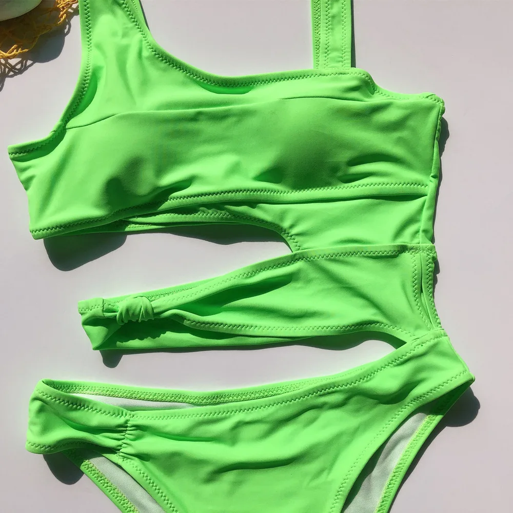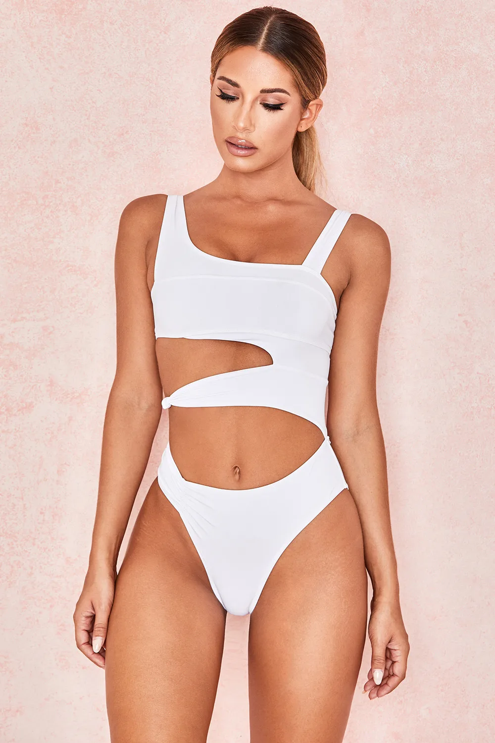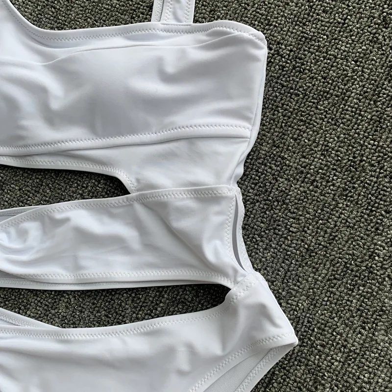 Купальник-монокини Женский, белый, с вырезами, пуш-ап, 2020