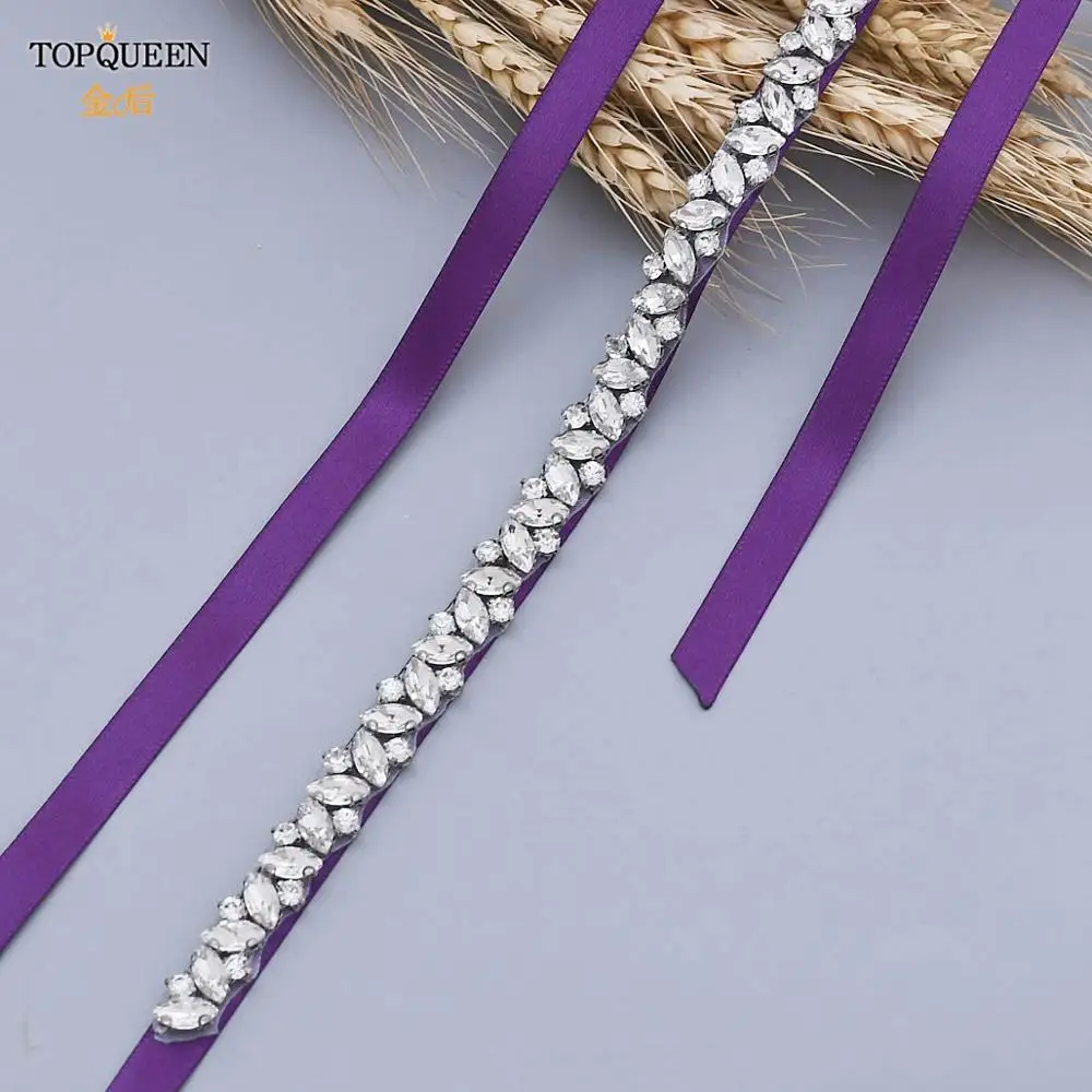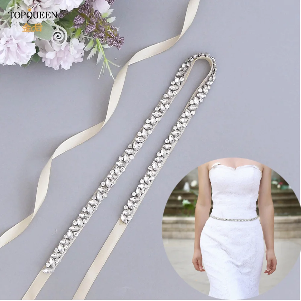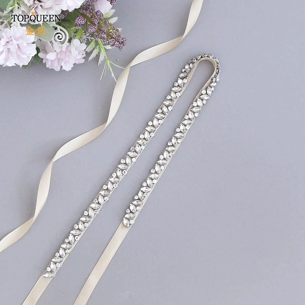 TOPQUEEN S404, свадебные стразы, пояс, серебряная тонкая лента для подружки невесты, ручная работа, бисерные камни, аппликации для платья для женщин