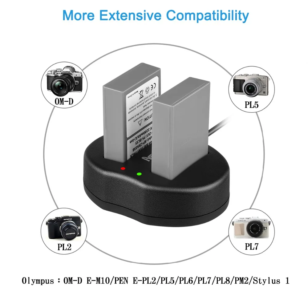 2 шт. 2200 мАч BLS-5 PS-BLS5 BLS5 BLS50 для Olympus OM-D E-M10, ручка E-PL2, E-PL5, E-PM2, стилус 1 аккумулятор камеры + двойное зарядное устройство USB
