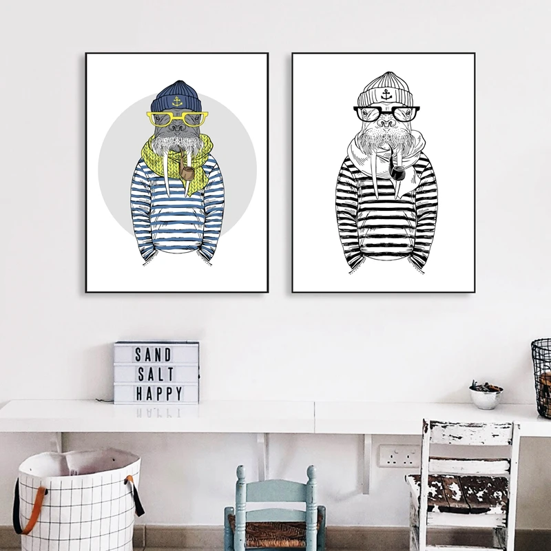 Северные плакаты и принты с морским моряком из мультфильма, настенные картины, портреты с морским моряком, настенная Картина на холсте, декор для детской комнаты