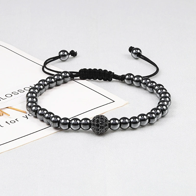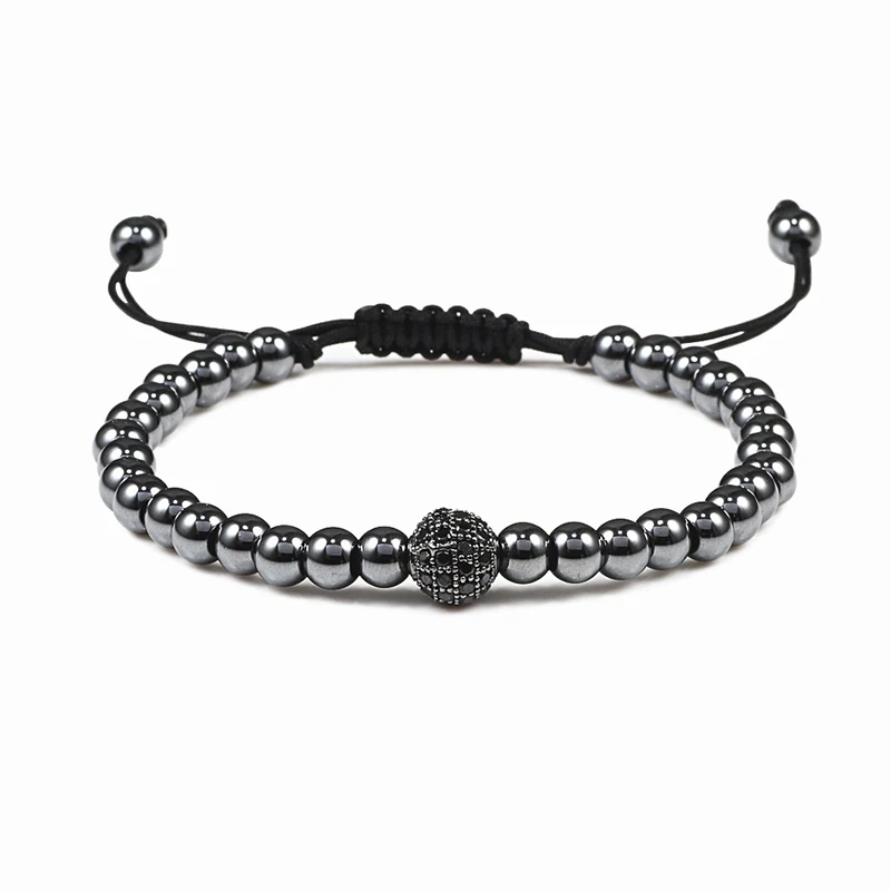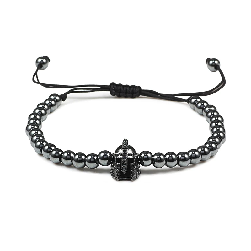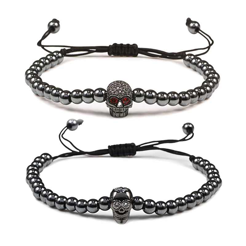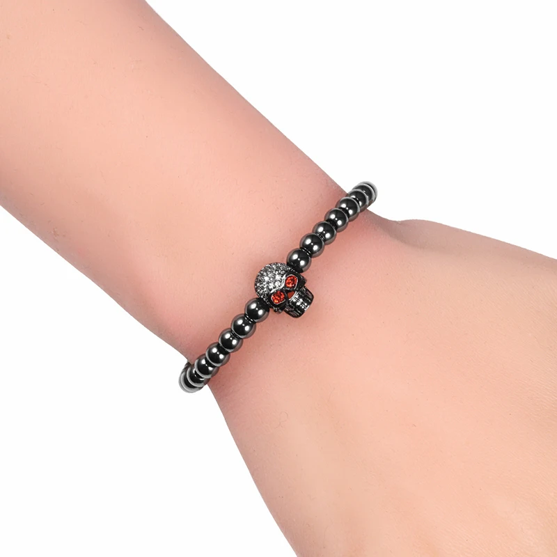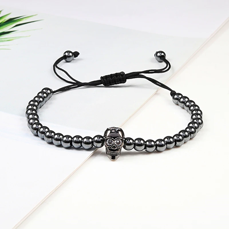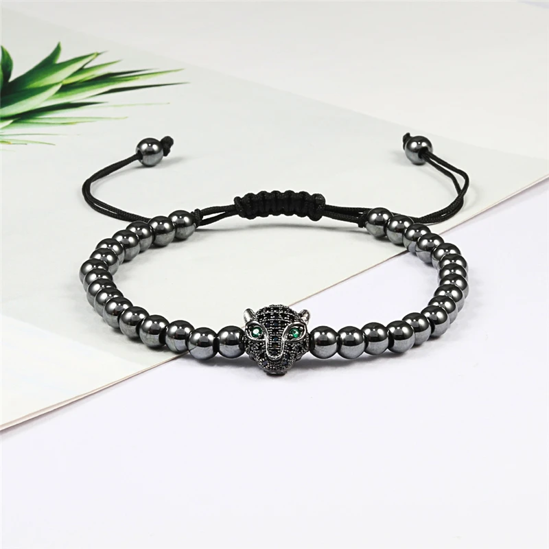 Новинка, браслеты из медных бусин с фианитами, черные браслеты ручной работы с хрустальным черепом, головой леопарда, короной, кубом, регулируемая подставка, браслет для женщин и мужчин