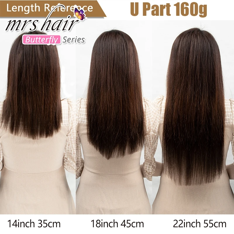 Волосы MRSHAIR U Type на зажимах, натуральные, для наращивания, густые, объемные, на всю голову, Реми, 100% натуральные волосы #2 # 1B #60 160G