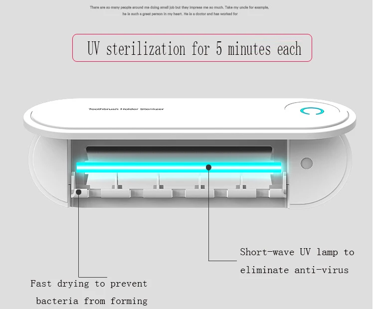 Компактный и очень симпатичный держатель для щеток. Как дезинфектор на щетках еще не пробовали, но проверили - все работает. Упаковка просто отличная, пришло очень быстро. Спасибо! Рекомендую!