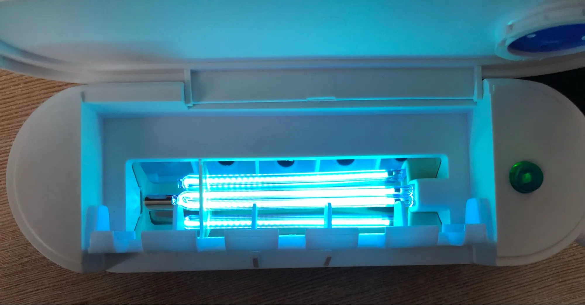 Сам аппарат вокруг, освещает свет, хотя трудно сказать, какой это эффект и действительно ли он стерилизован. Товар был без каких-либо коробок или инструкций, упакован только в пузырчатую пленку.