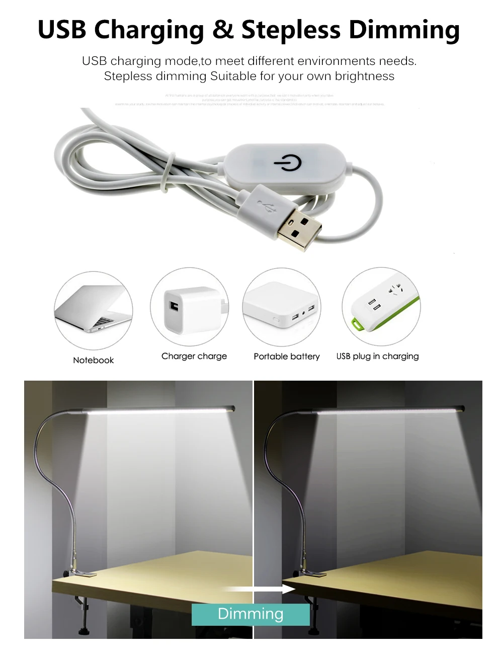 Настольная лампа с длинными ручками 48 Светодиодный s с зажимом, офисный светодиодный настольный светильник, USB гибкий, защита глаз, лампы для чтения для работы и учебы