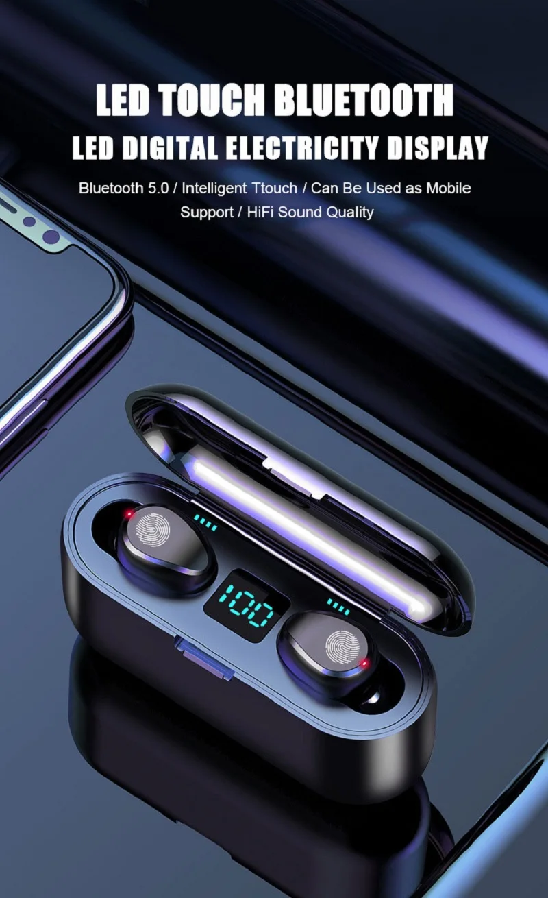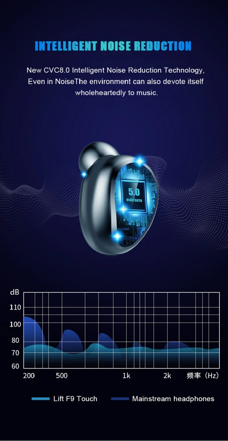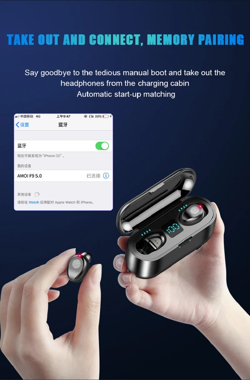 Беспроводные наушники TWS F9 Hifi, Bluetooth наушники, сенсорные спортивные наушники, Поддержка Siri с микрофоном, зарядный чехол для Redmi Air Dots