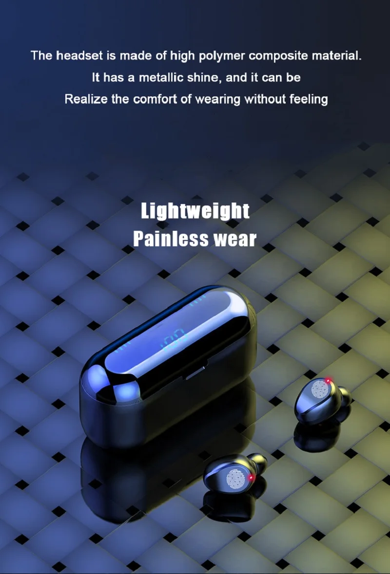 Utomatic Сопряжение: 1. Извлеките наушники влево и вправо (LR) из зарядный чехол. Ухо автоматически открывается и подключается 2. Включите Поиск телефона по Bluetooth и нажмите на имя основной гарнитуры для сопряжения. 3. При повторном использовании они автоматически подключаются к вашему Bluetooth устройству 4. Истинное беспроводное стерео, HIFI звук. 5. И левый, и правый уши имеют полную функциональность bluetooth-гарнитуры и могут быть использованы индивидуально или в паре. 6. Двойной режим Bluetooth 5,0, Ультра низкое энергопотребление. 7. Расстояние передачи Bluetooth: 10 метров без барьера. 8. Время прослушивания песни: около 4-5 часов 9. Емкость аккумулятора (зарядная коробка): встроенный аккумулятор большой емкости 2000 мАч. Можно заряжать наушники 25 Время 10. Время работы в режиме ожидания: около 120 часов. 11. Технология снижения уровня шума: CVC8.0. Посылка включает в себя: 1 * для беспроводных наушников (слева и справа) 1 * зарядное устройство 1 * кабель Micro-USB 1 * Руководство пользователя Запасная затычка для ушей