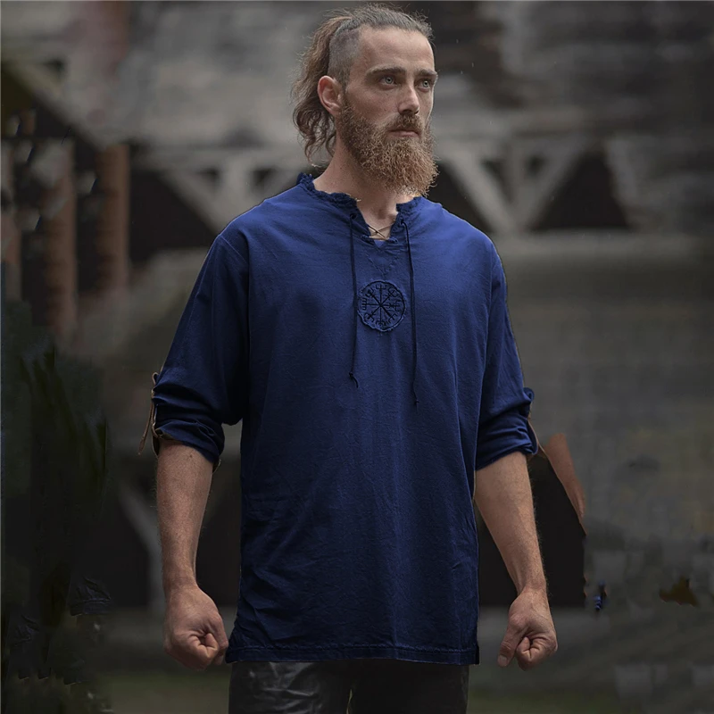 Мужская льняная футболка с вышивкой в стиле ретро, средневековый пи...