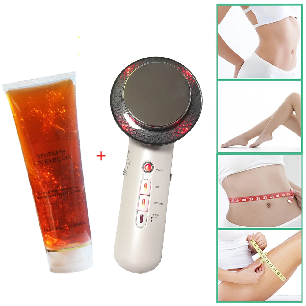 Массажер для тела + гель для похудения RF инфракрасный 1 МГц ультразвуковая EMS кавитационная машина сжигатель жира подтяжка груди красота бар потеря веса