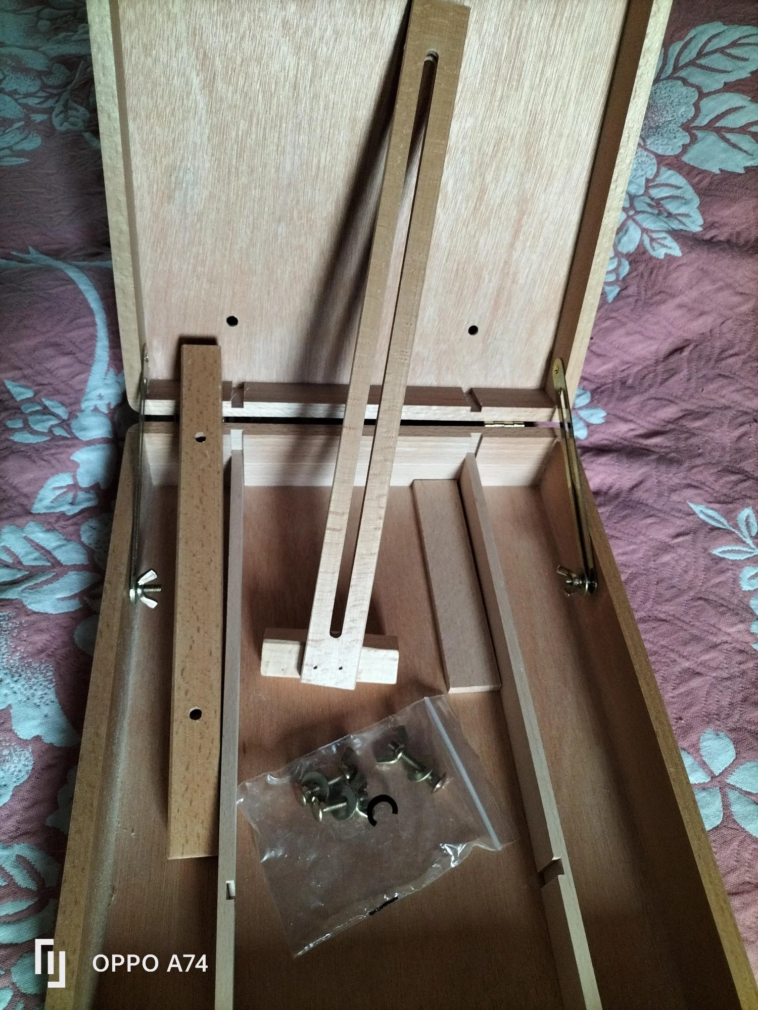 Хороший ящик для красок. Можно прикрепить лист или подрамник с холстом. Ящик снаружи и крепления для холста обработаны хорошо, а внутри лучше шкуркой пройтись, убрать шероховатости. Т образный держатель для работы присоединили криво. Придется переделать. Не люблю не аккуратную работу. В целом, вещь хорошая. Рекомендую.