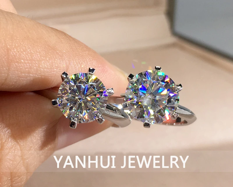 LMNZB оригинальные 2 карат 8 мм круглые фианитовые кольца из желтог...