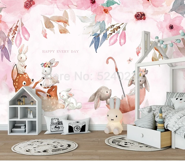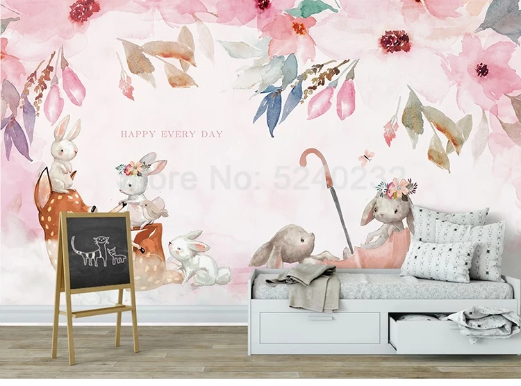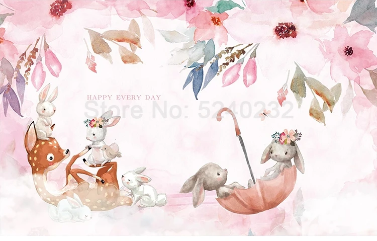 Пользовательские фото ручная роспись розовый Лось кролик гостиная детская комната животное живопись мультфильм пасторальные Настенные обои