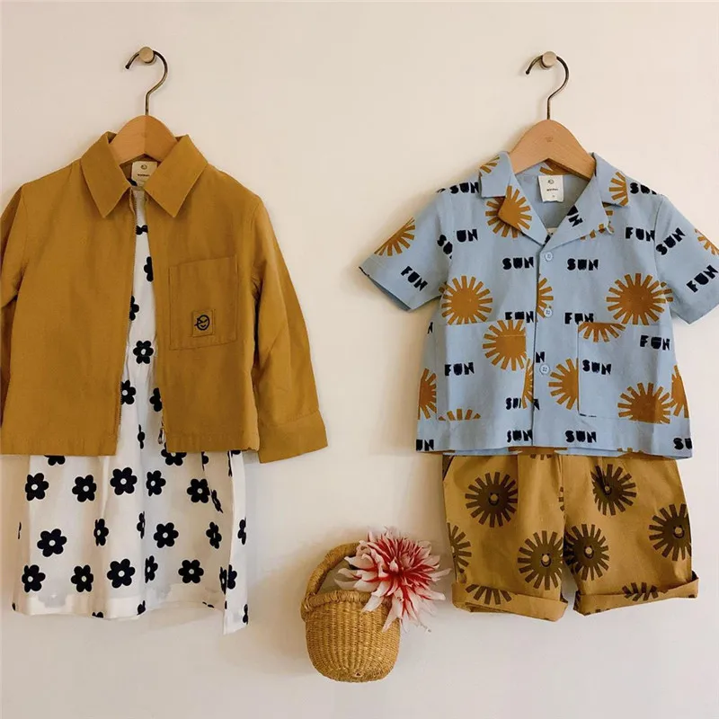 EnkeliBB Wyn2020 SS, модное ТРАПЕЦИЕВИДНОЕ ПЛАТЬЕ для девочек, гавайская одежда для маленьких девочек, модное Брендовое детское платье с принтом солнца