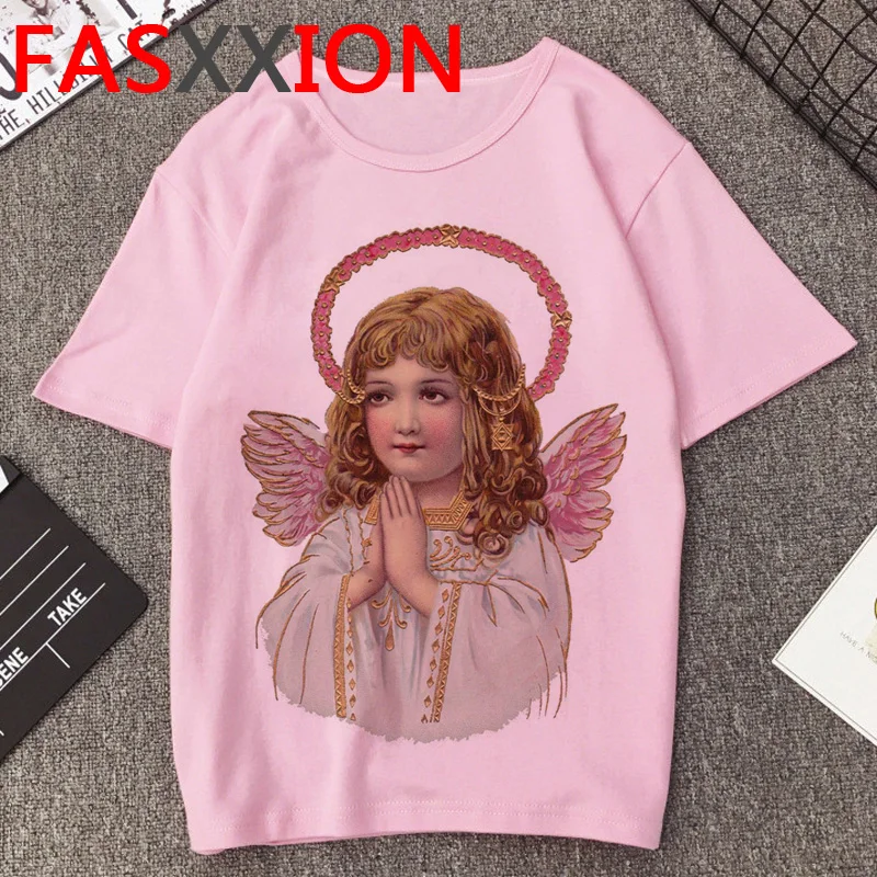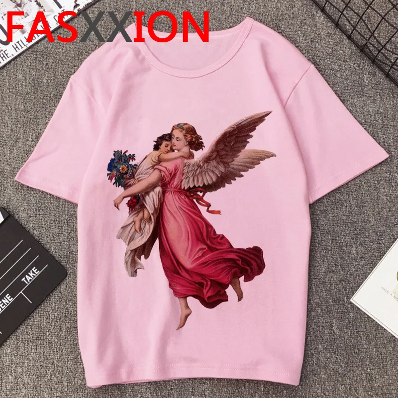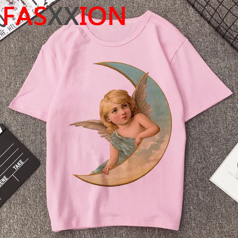 Женская футболка с принтом ангела, Винтажная летняя футболка большого размера, размера плюс