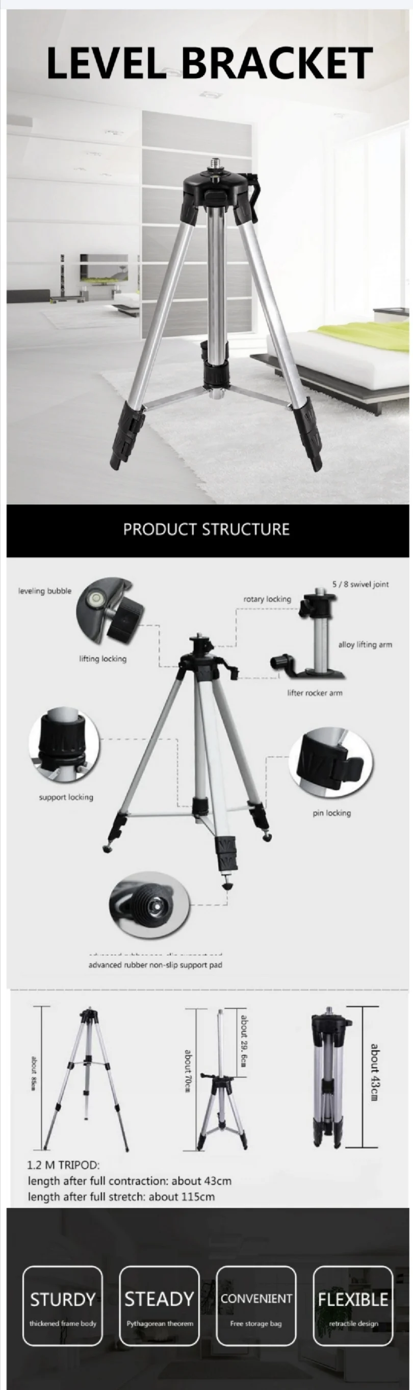 Штатив для лазерного уровня, автоматический самовыравнивающийся строительный уровень, 120 см, 360 градусов