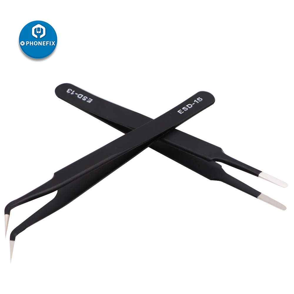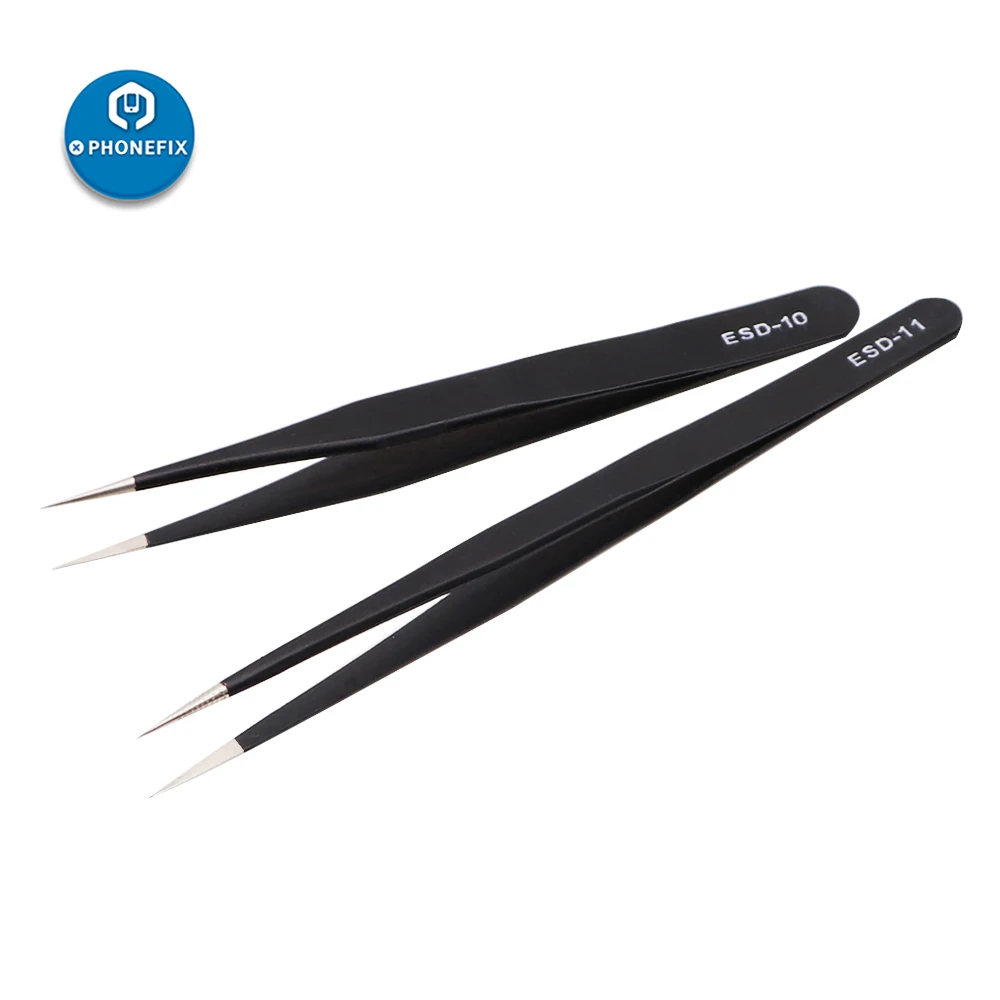 Антистатический пинцет ESD 10 шт., набор многофункциональных щипцов из нержавеющей стали, прецизионный изогнутый Прямой пинцет, набор электронных инструментов