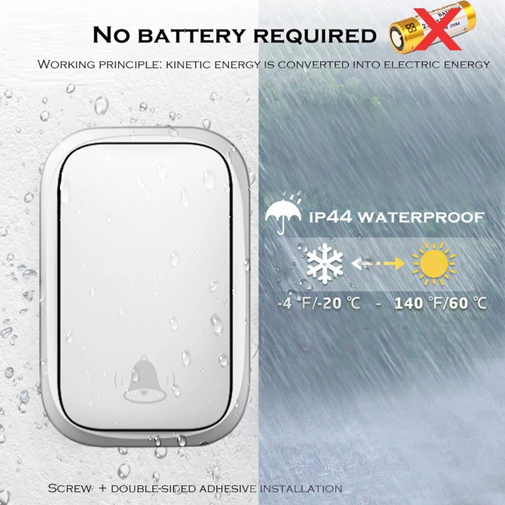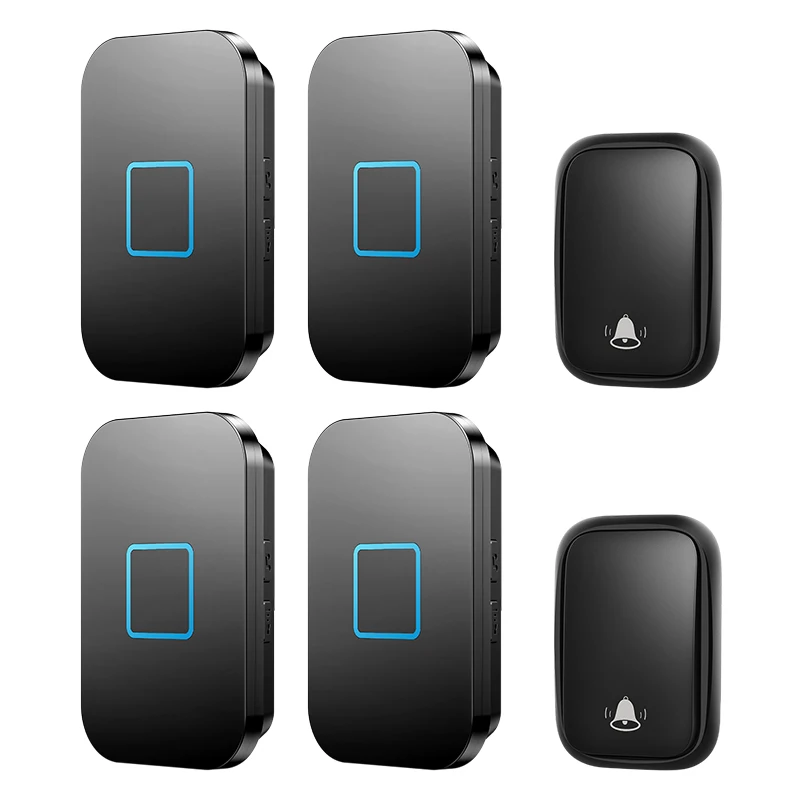Автономный беспроводной дверной звонок CACAZI, водонепроницаемый, без батареек, 2 кнопки, 4 приемника, штепсельная вилка стандарта США, ЕС, Великобритании, звонок с дистанционным управлением 150 м