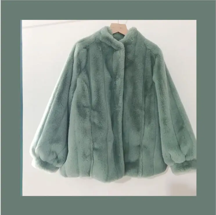 Зимнее пушистое пальто из искусственного меха с воротником-стойкой, винтажная Женская куртка из меха норки с рукавами-фонариками, теплая верхняя одежда из кроличьего меха