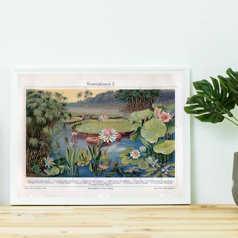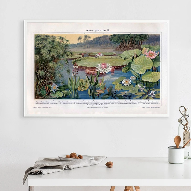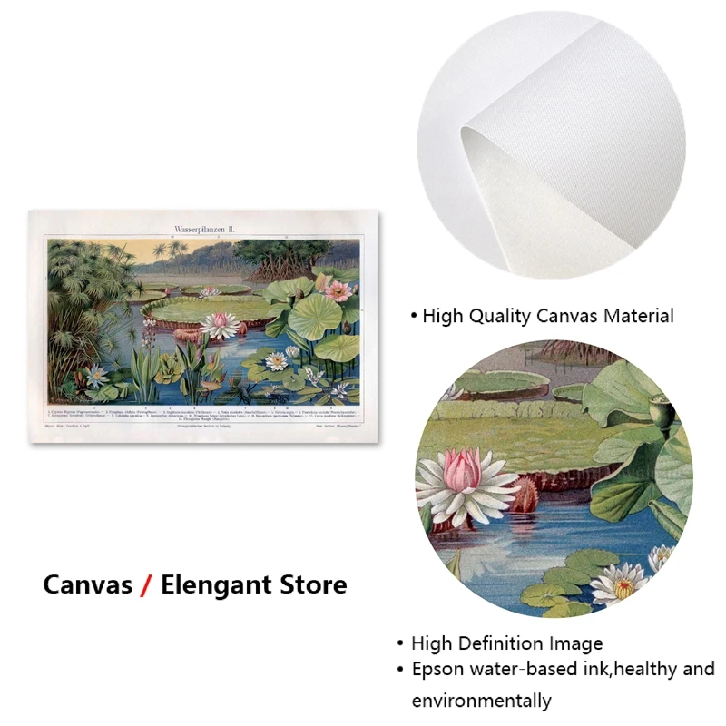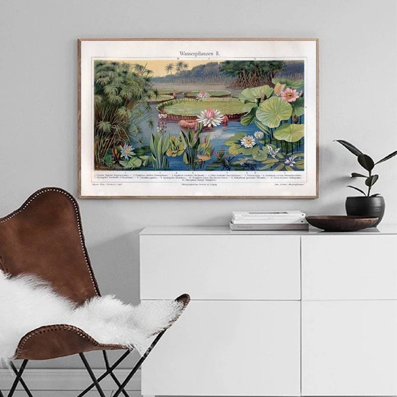 Водяные лилии растения принты лилии колодки пруд Бог цветок ботанический винтажный настенный плакат Искусство Холст Картина лотоса деревенский Декор