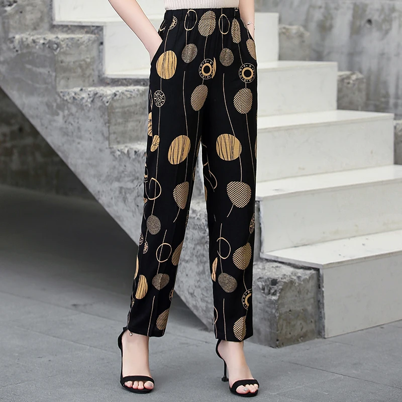 Шаровары женские, летние, с высокой талией, с принтом, эластичным поясом, для женщин среднего возраста, 2021