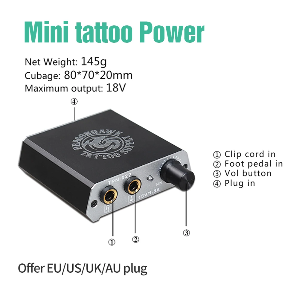 Полный набор для начинающих татуировок, блок питания для мини-татуи...
