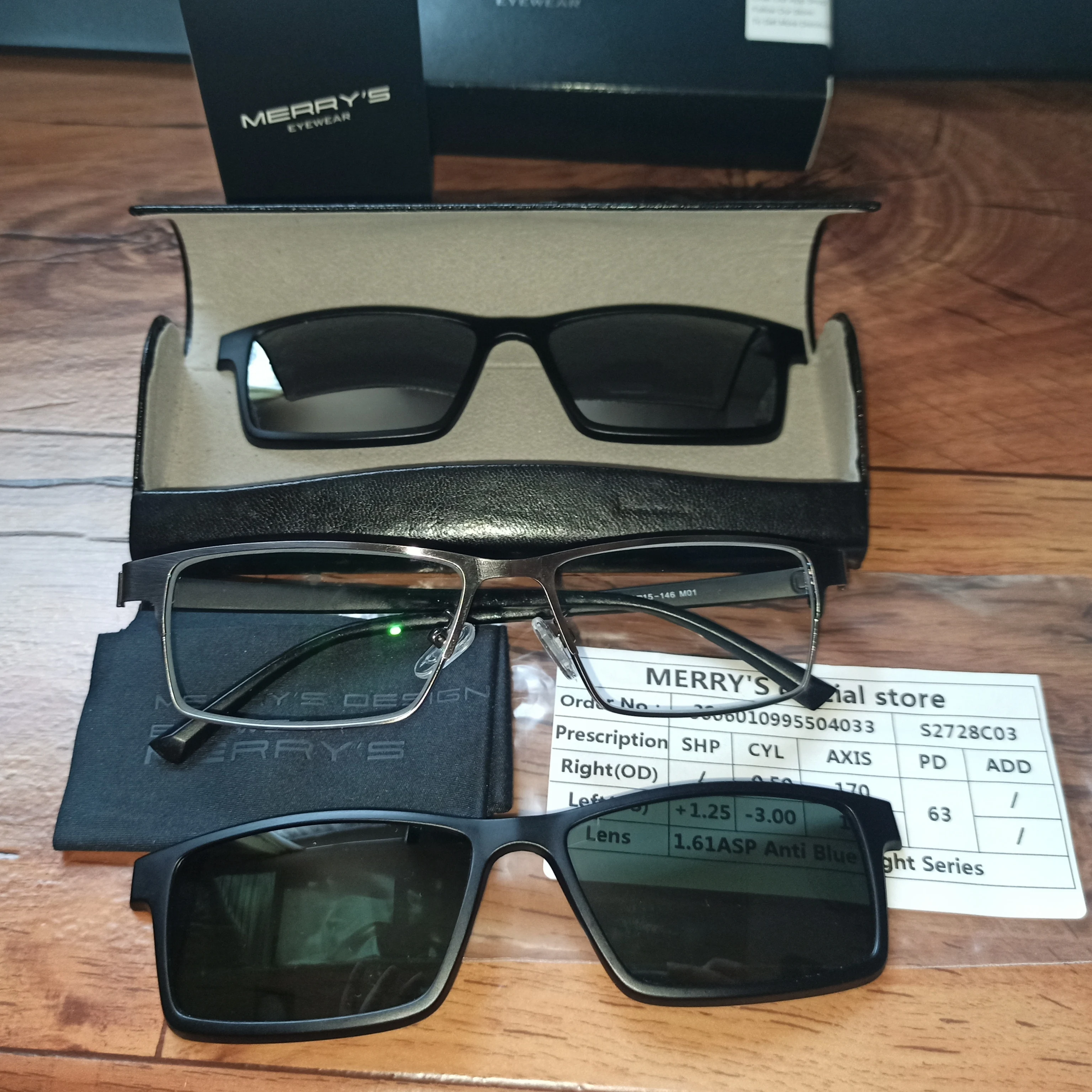 Мужские поляризационные очки с клипсой MERRYS, дизайнерские очки 2 в 1 с магнитной оправой для мужчин, очки с клипсой для близорукости, TR90, S2728