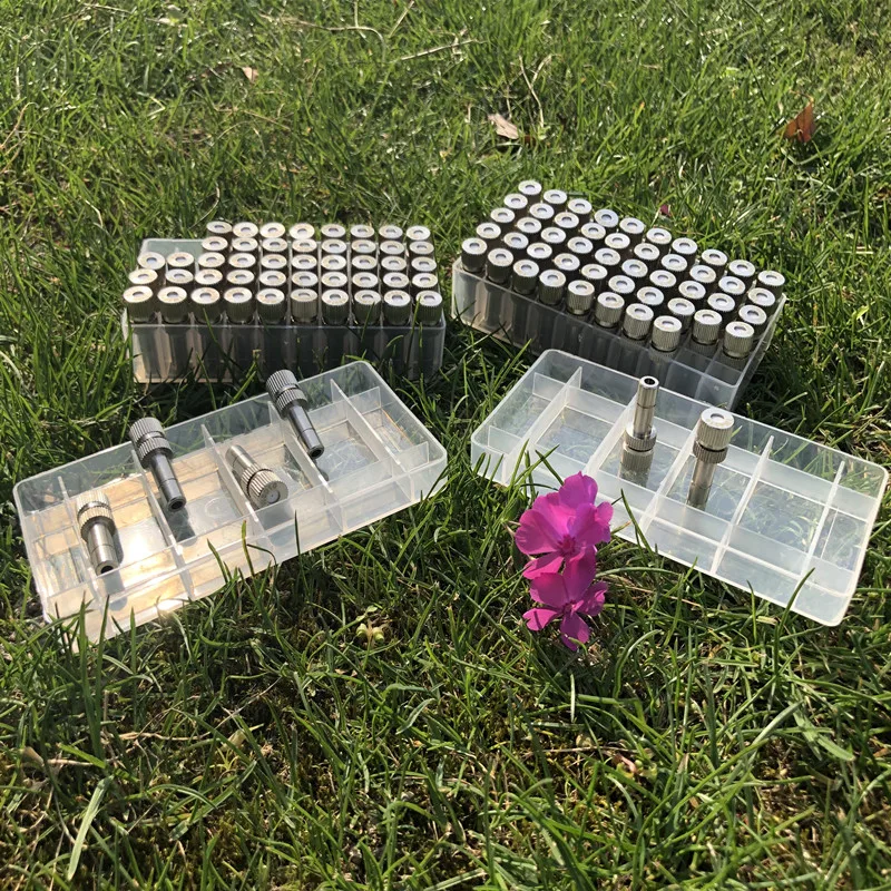 100 шт. 6 мм низкое давление 0,15-1,0 мм Скользящий замок никелирование туман запотевающие форсунки садовый охлаждающий водяной распылитель оросительный спринклер M061