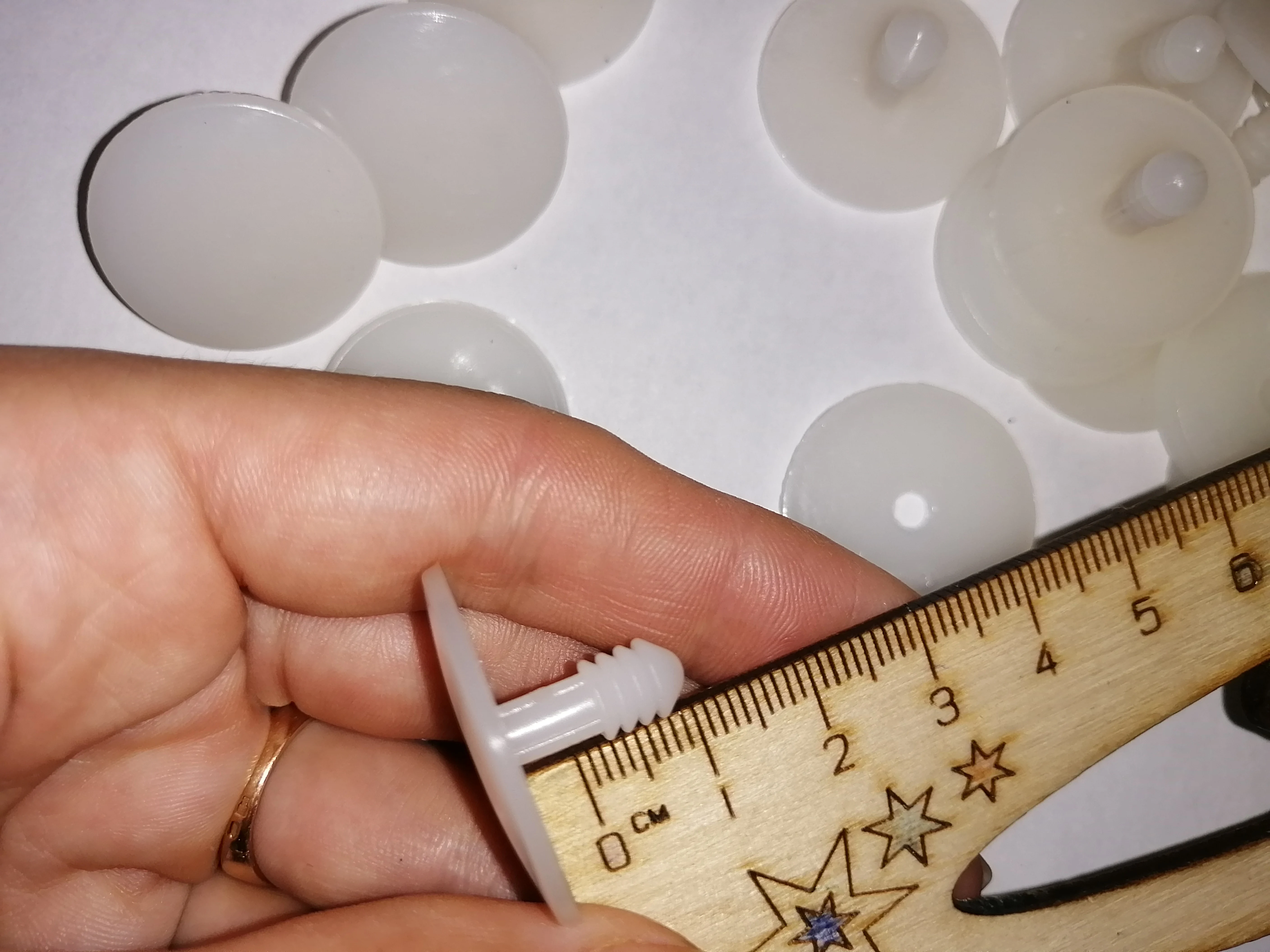 Качество пластика хорошее, плотное, НО размеры не совпадают с заявленными (разница примерно в 0,5 см.) За что снижаю количество звёзд. Ножка, для такого размера сустава, немного коротковата. Надеюсь, что использовать получится. В деле пока не пробовала. На некоторых суставах есть остатки пластика - нужно будет отшлифовать края. 45 мм.