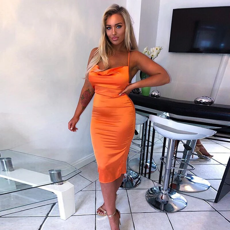 Новинка лета 2021, неоновое атласное облегающее платье средней длин...