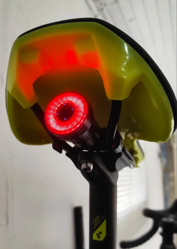 Светодиод COB.1. Корпус из 6061 алюминиевого сплава.2. Автоматически включается/выключается в зависимости от интенсивности света и движения.3. Автоматически переключается в спящий режим для экономии энергии.4. Крепление на рейку сиденья5,4 режимов вспышки.6. 20xrs + время работы.Литий-ионный перезаряжаемый аккумулятор 7,400 мАч.8.USB-зарядка.9. Индикатор заряда батареи (мигает каждые 6 секунд)10. Компактная и легкая конструкция (55 г).11. Водонепроницаемость IPx6.