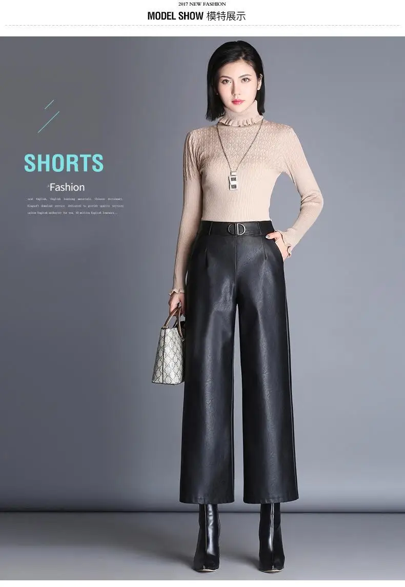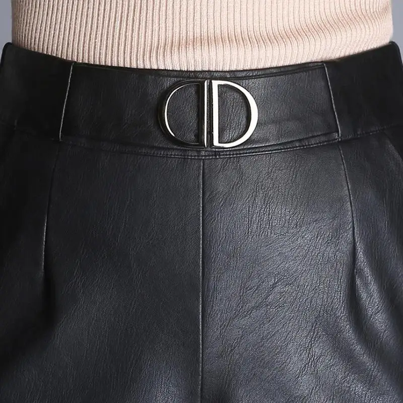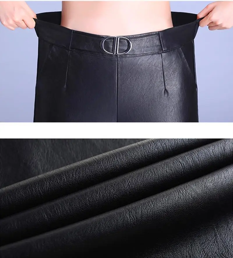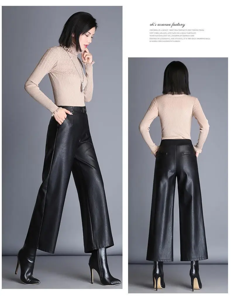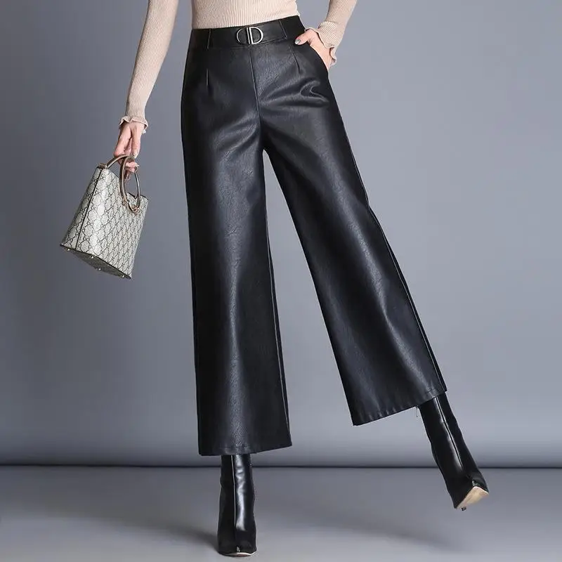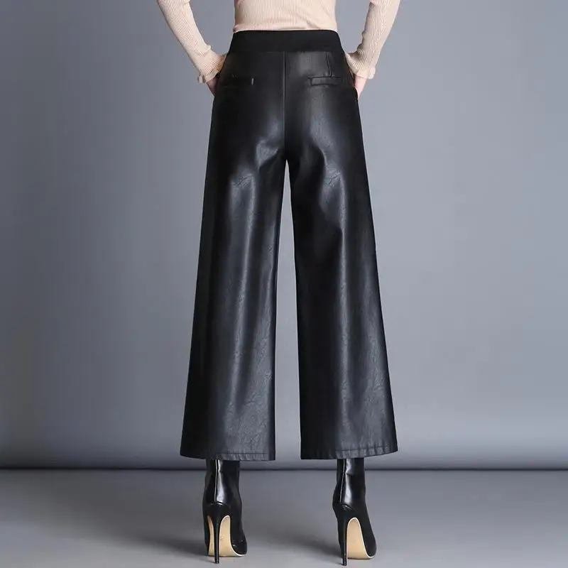 Женские офисные брюки из искусственной кожи, элегантные черные широкие брюки большого размера с высокой талией, 2021, женские мешковатые штаны