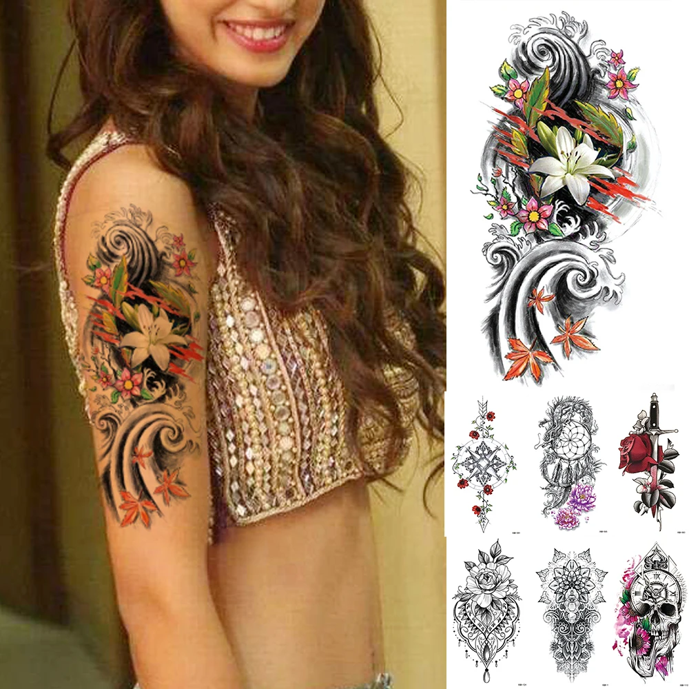 Водостойкая временная татуировка, японская Лилия, демон, вспышка, тату, роза, меч, боди-арт, искусственная татуировка для мужчин и женщин