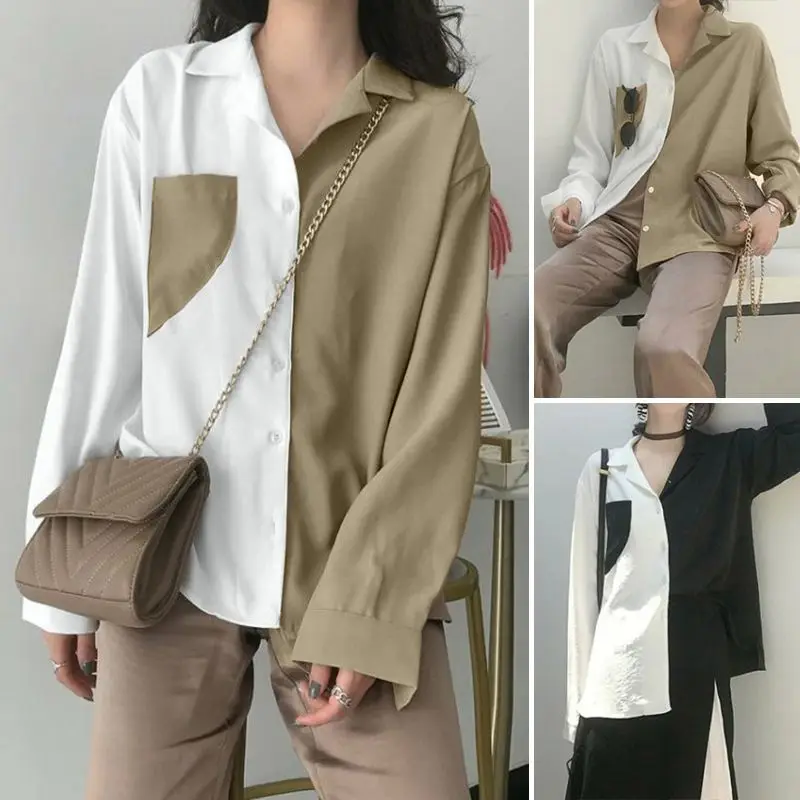 Материал: 95% полиэстер + 5% спандексЦвет: черный, хакиПосылка входит: 1 блузкаСведения о продукте:-Полный рукав-Передний карман-Дизайн прошивки-Отложной воротник-Спереди на пуговицах