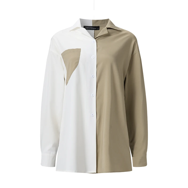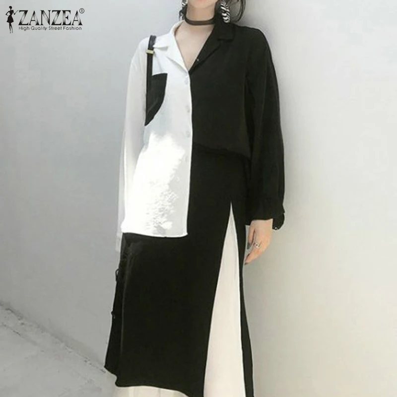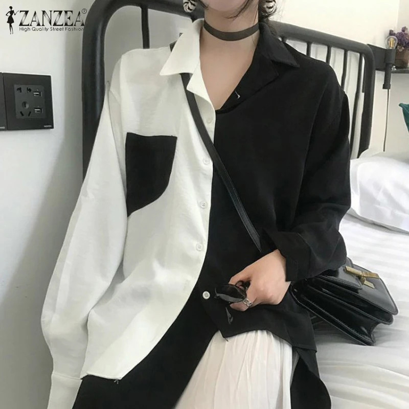 Рубашка ZANZEA Женская в стиле пэчворк, модная офисная блузка в стиле пэчворк, Повседневная Туника с отложным воротником и длинным рукавом, халат, весна
