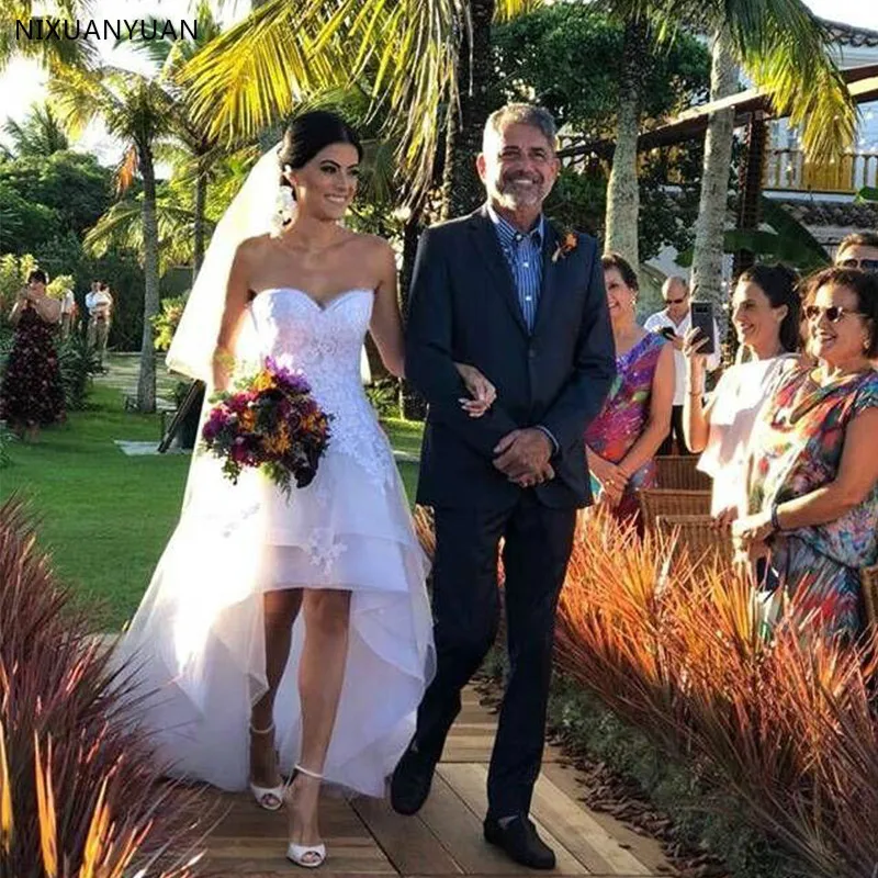 Белое кружевное свадебное платье JIERUIZE с аппликацией Hi Low, сва...
