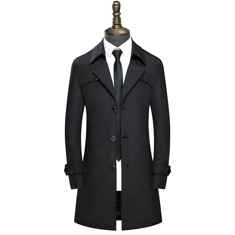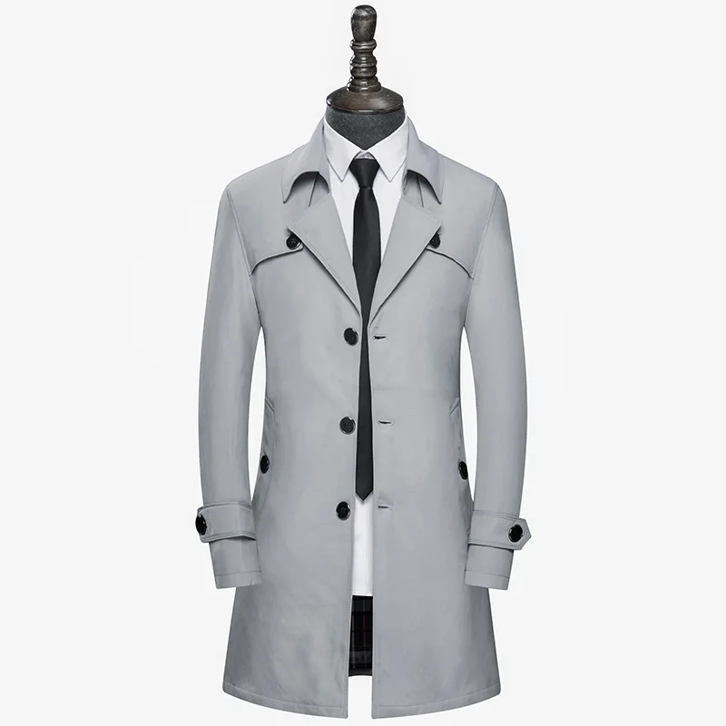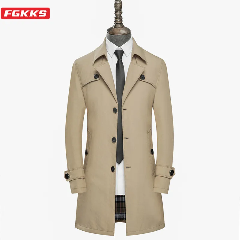 Мужской однобортный Тренч FGKKS, однотонная теплая куртка в Корейском стиле, длинный тренчкот для осени