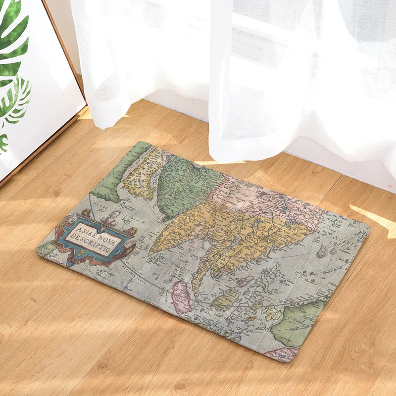Коврик придверный, с 3D принтом, с картой мира, нескользящий, впиты...