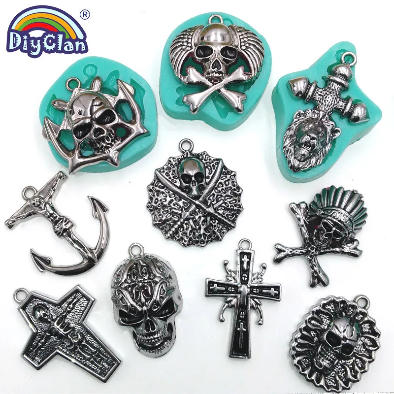 Формочка для силиконовой Подвески с крестом в виде головы черепа для хип-хоп панк, ожерелье из смолы для Хэллоуина, шоколада, помадки, украшения торта, инструменты Matic