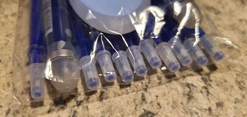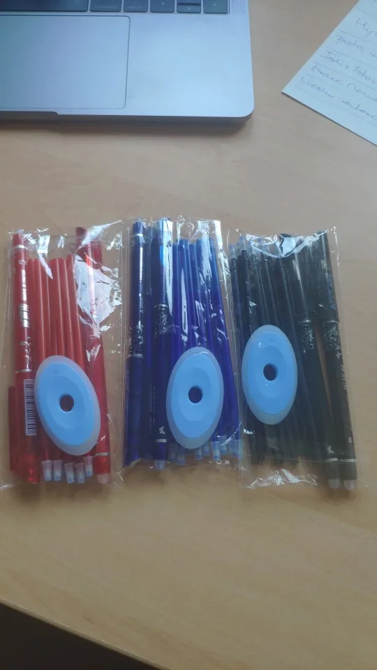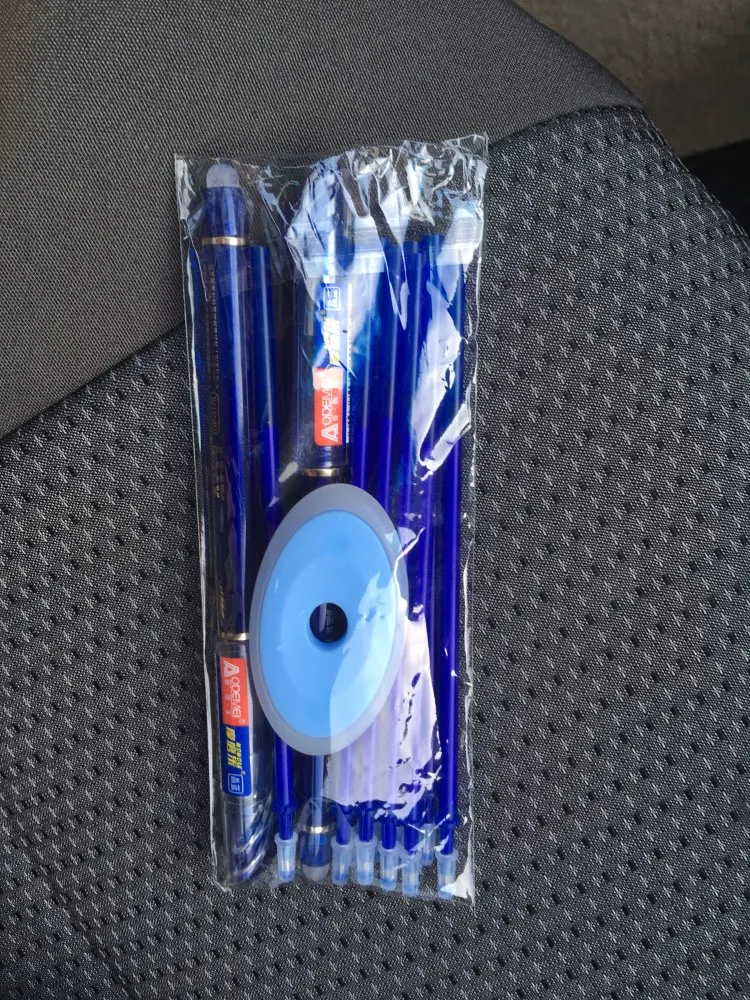 Очень быстрая доставка, всего за 12 дней. Ручки отлично пишут, хорошо стираются.