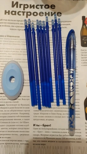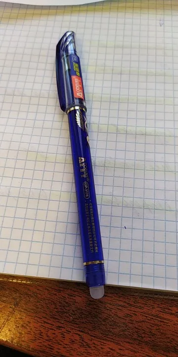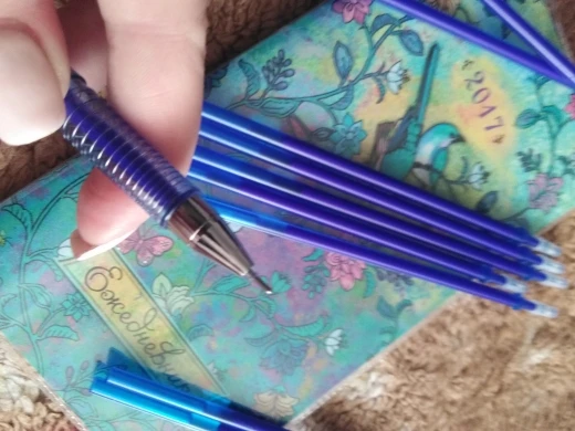 Крутая ручка, отличные пасты. Открыла посылку, достала тёрку, стирку, не знаю, как правильно, первая мысль, разводняк, как кусок пластмассы, может стирать гельку, НО она реально работает, класс!!! обязательно закажу себе ещё синие стержни!!;