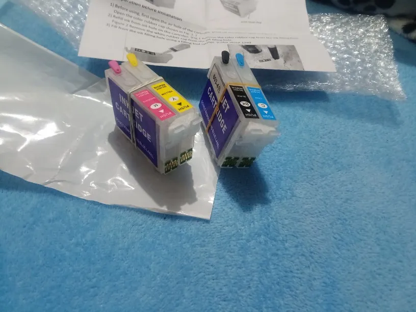 Отличная работа. Когда уровень чернил исчезнет, принтер говорит, что чернильный картридж не распознан. На самом деле это нормально, просто нужно удалить его и заменить, картридж будет сброшен. Примечание: для печати необходимо открыть отверстие для воздуха. Не забудьте нажать кнопку «использовать эти чернила», когда принтер говорит, что это не официальный картридж. Я использую его с чернилами, совместимыми с HP (не epson), для печати чертежей и фотографий, я не замечал никакой разницы с оригинальным картриджем, продаваемым с моим принтером. Это для меня очень хорошая сделка, я благодарю крупного продавца. Быстрая доставка. Я очень доволен.