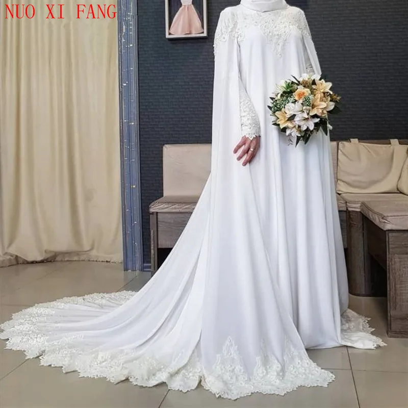 Свадебное платье NUOXIFANG, мусульманское кружевное платье с длинным рукавом и накидкой, свадебное платье невесты, 2020