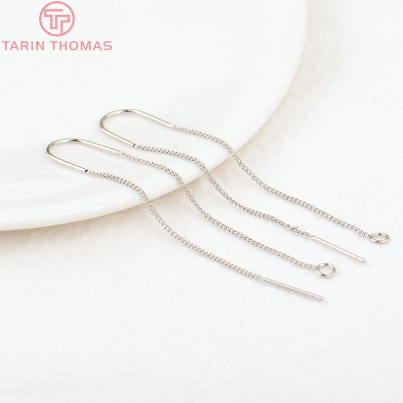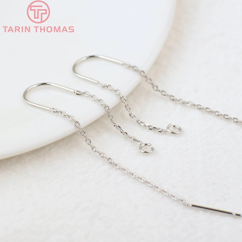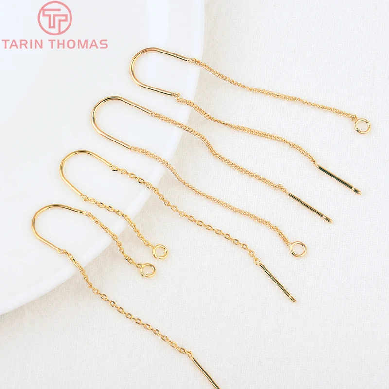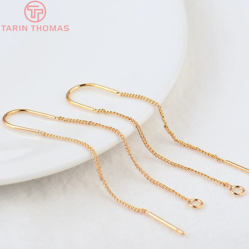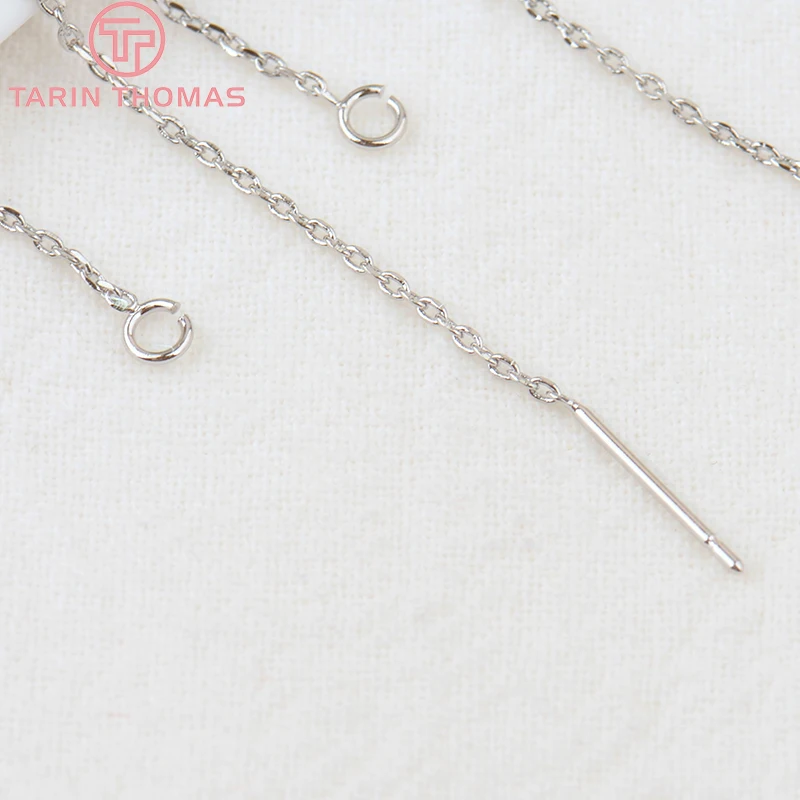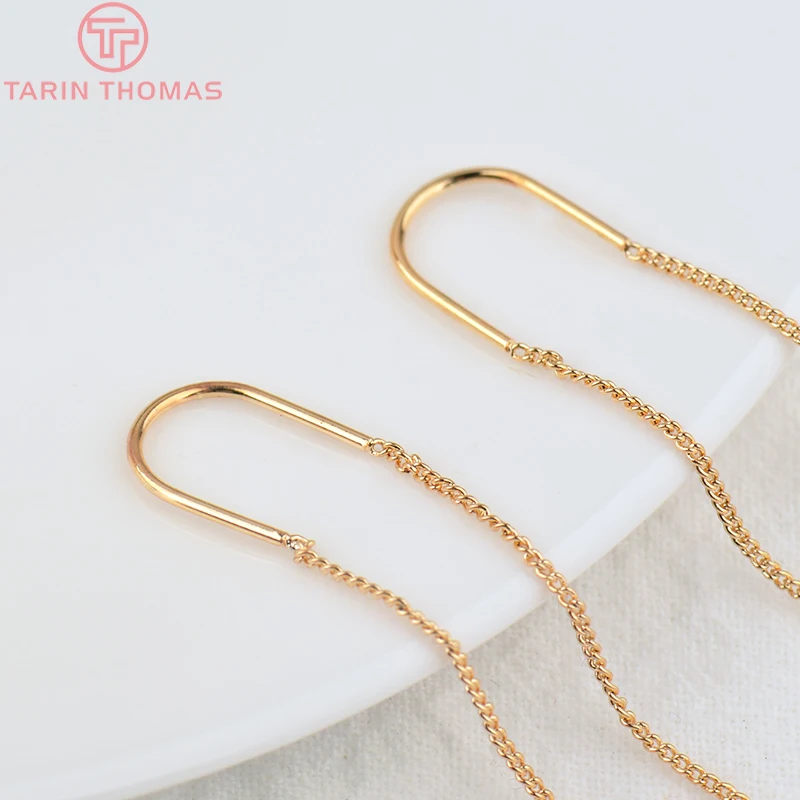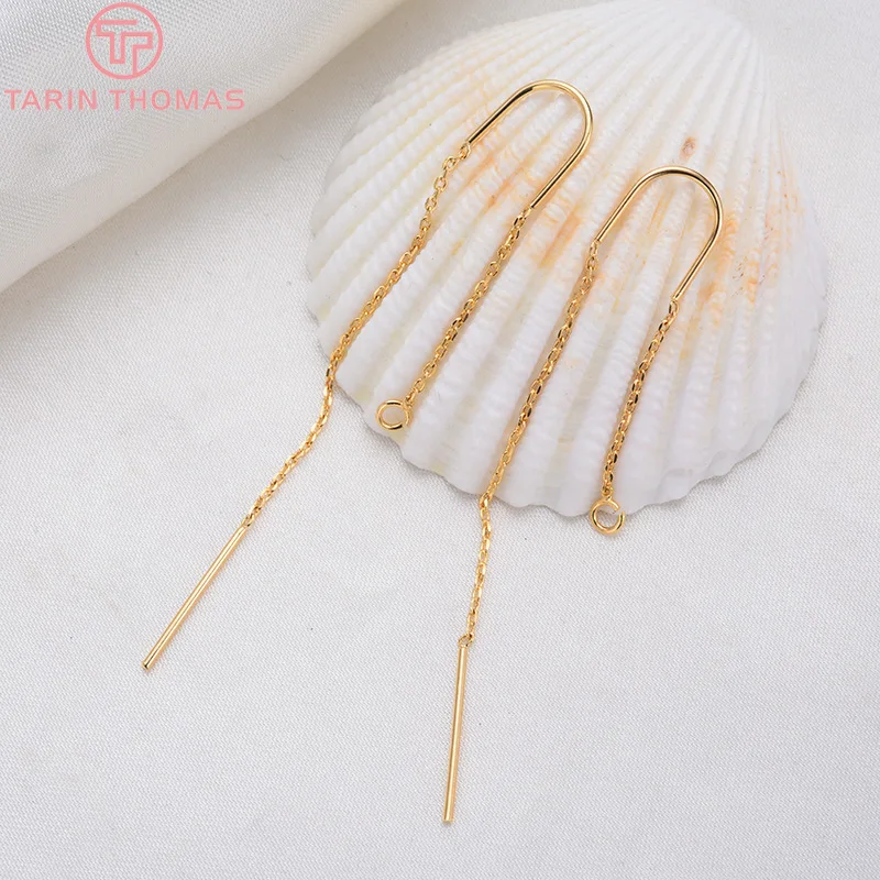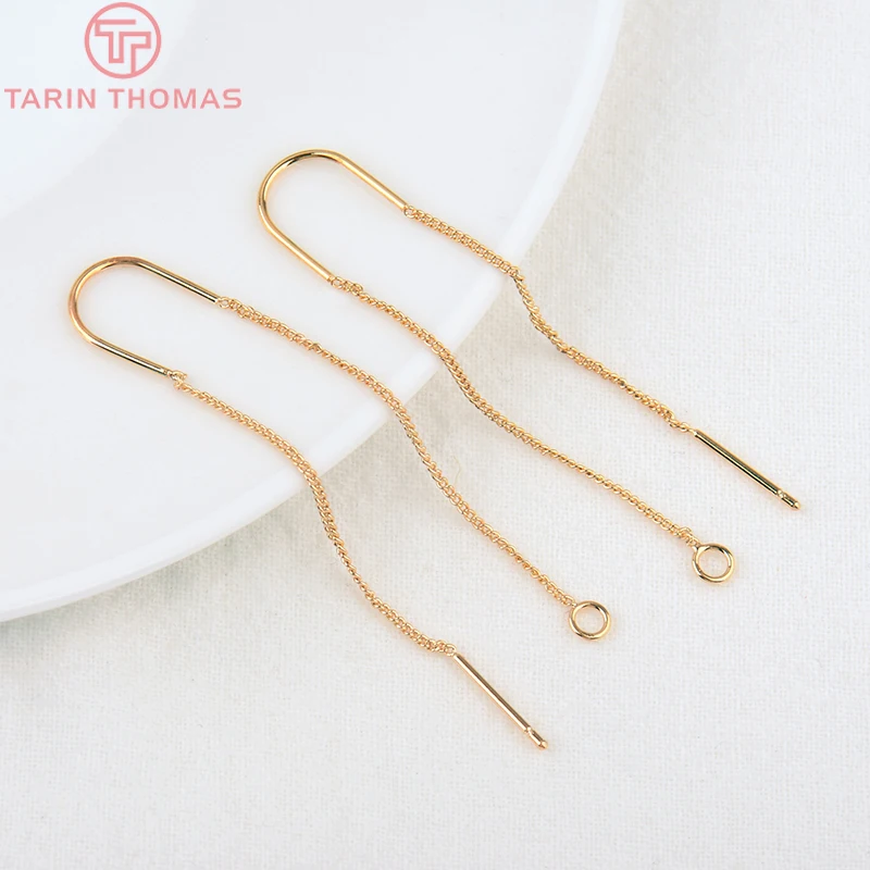 6 шт., позолоченные серьги-гвоздики с цепочкой, 60 мм