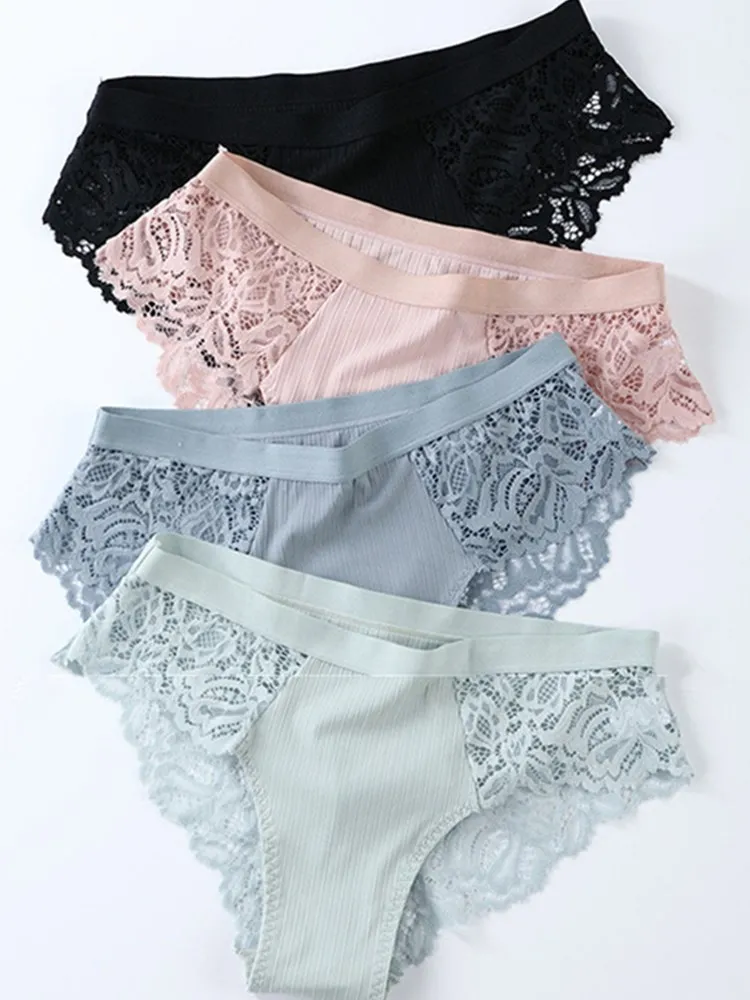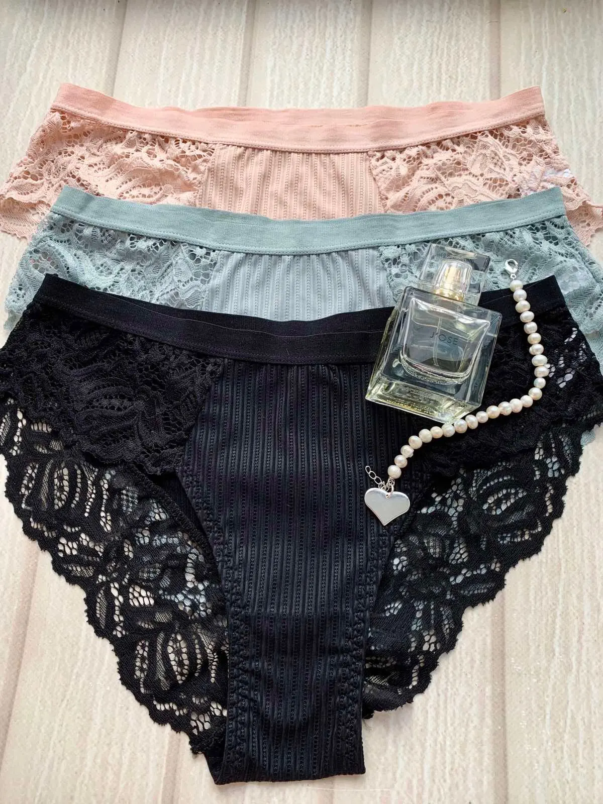 Трусики женские хлопковые кружевные с цветочным принтом, 3 шт.