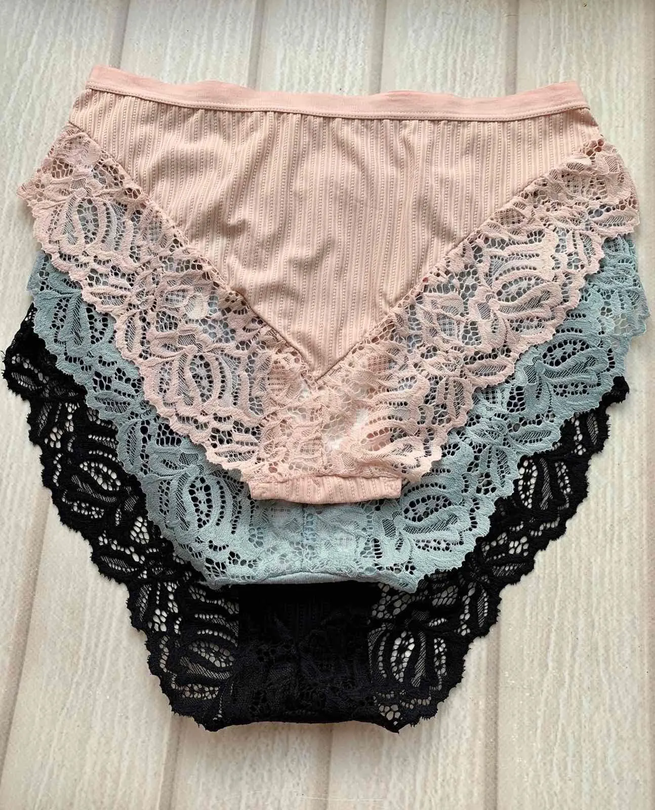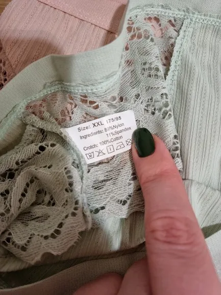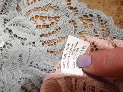 Неплохое белье, очень хорошо тянется, ткань приятна к коже. На объем бедер 103 см очень комфортно, даже немного с запасом. Единственное, серые кажутся меньше со стороны. По размеру подходят, но кружево меньше прикрывает в отличие от черных и розовых. В целом могу рекомендовать. Спасибо продавцу за оперативность!