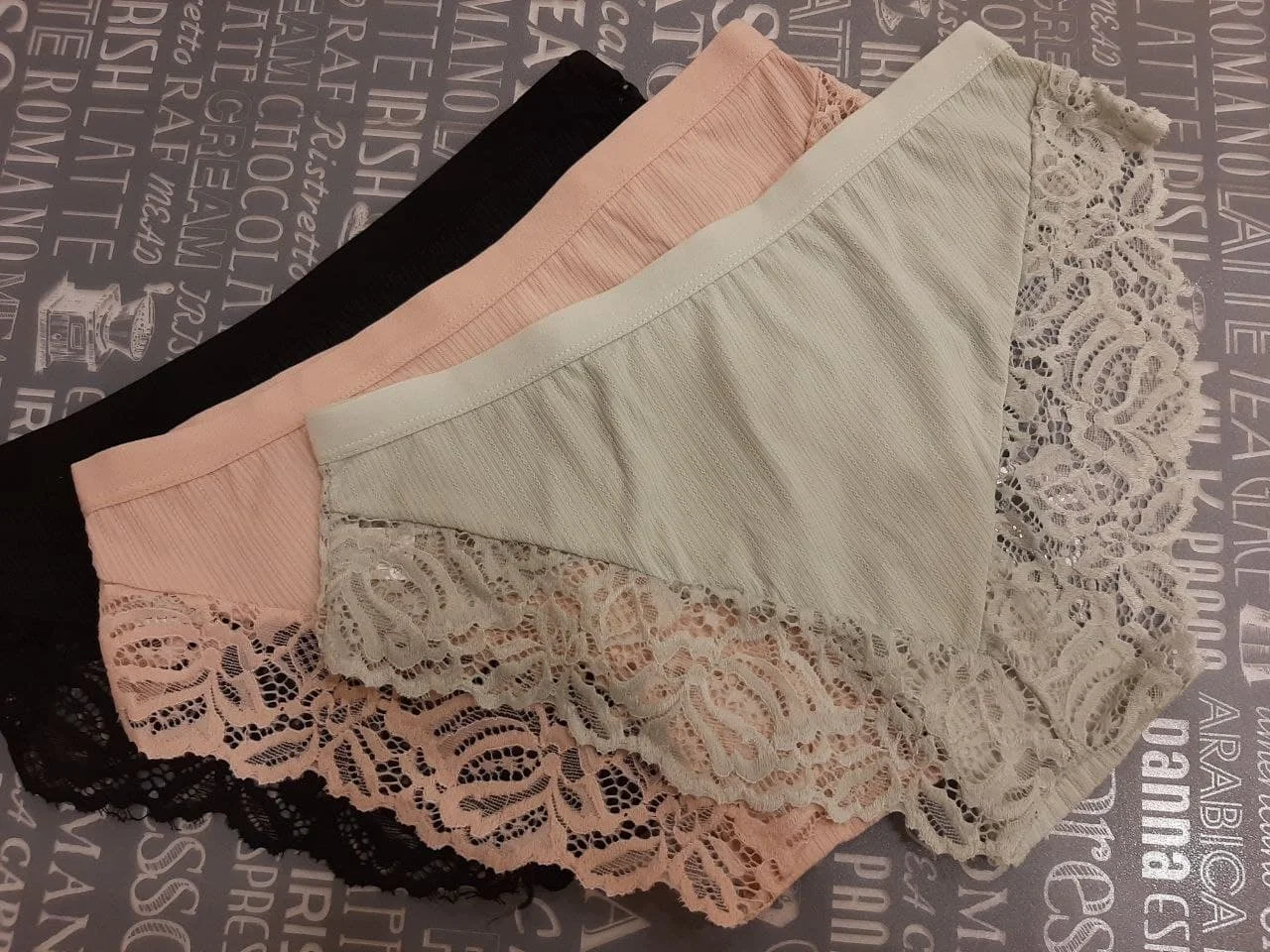 Трусики хорошие, но, черные оказались с браком, кружева сзади один короче другого на 3см, и трусы перекошены. А так по качеству нормальные. Доставка заняла месяц.