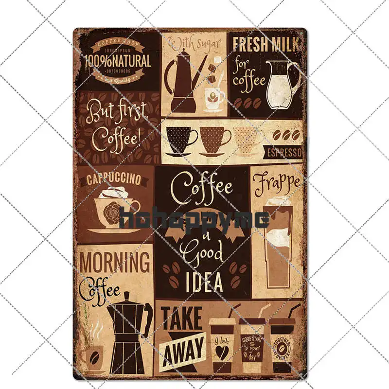 Жестяная вывеска для кофе, винтажная металлическая табличка, плакаты для кухни, кофе, бара, кафе, ретро, декоративные тарелки для паба, домашнего декора, 20 х30 см
