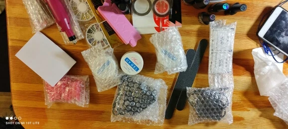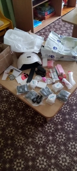 Заказ доставили курьером на пятый день, все как в описании, все целое, лампа и машинка рабочие, только лаки и гели очень маленькие, поэтому и цена такая, я довольна, буду пробовать, для начала самое то.